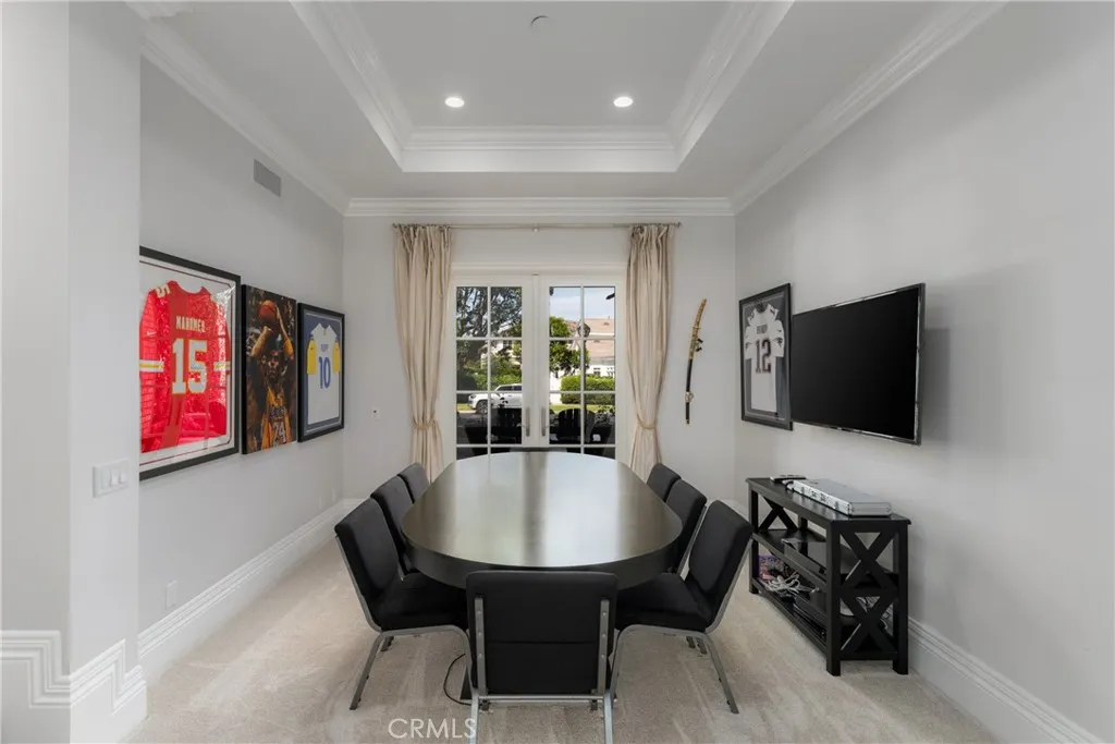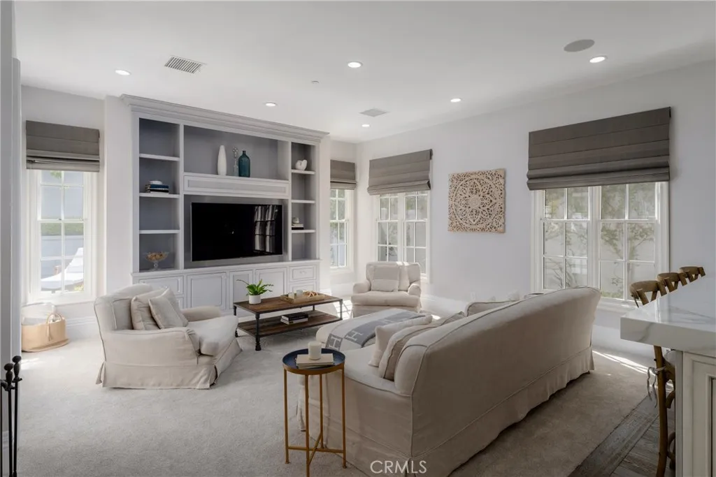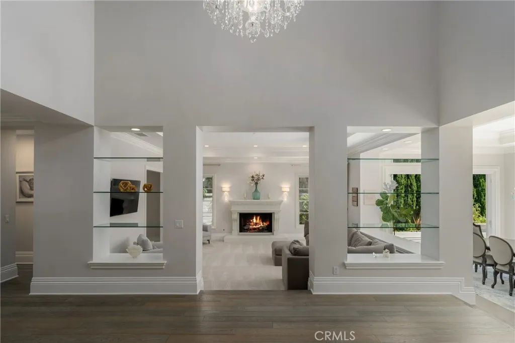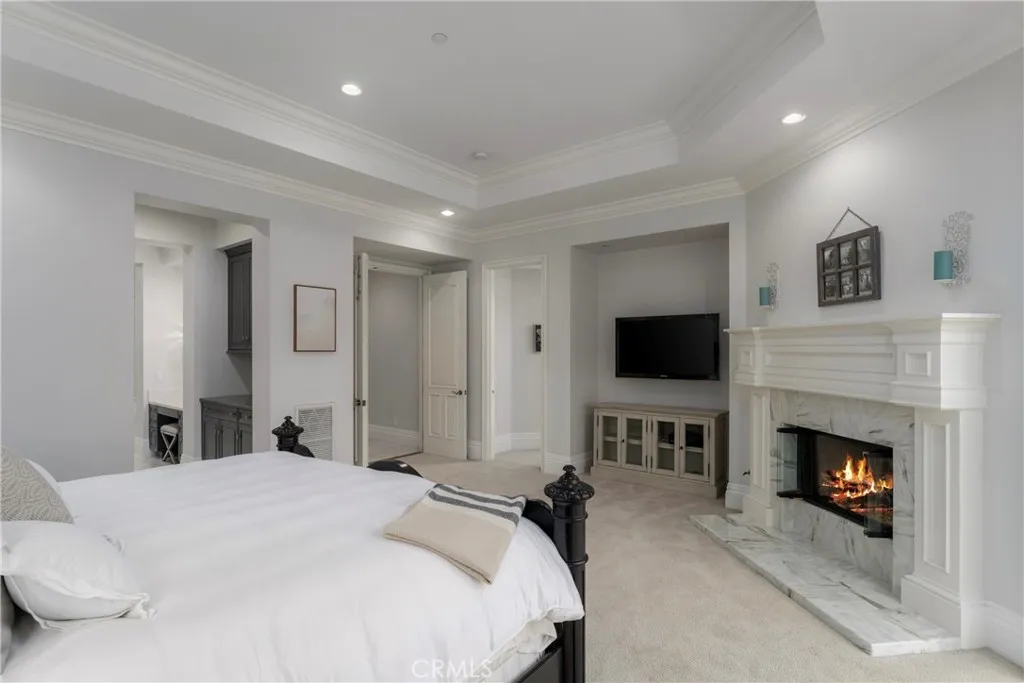 Located in the prestigious, guard-gated community of One Ford Road, this rare Providence Plan 4 offers over 5,100 square feet of refined living space - making it one of the largest homes in the neighborhood. A charming entry welcomes you into a grand foyer with a dramatic winding staircase. The main level boasts a spacious dining room with bifold doors that open seamlessly to the backyard, creating the perfect setting for indoor-outdoor entertaining. The chef's kitchen features porcelain countertops, a large center island, Viking and Sub-Zero appliances, and custom cabinetry with abundant storage. Adjacent, you'll find a formal living room and a versatile bonus room - ideal for a library, office, or even a poker room. A full ensuite bedroom completes the first floor, perfect for guests. Upstairs, the expansive primary suite includes a cozy fireplace, reading nook, and luxurious bathroom with dual sinks, marble finishes, soaking tub, and two custom walk-in closets. A private office or exercise room sits just beyond. Two additional guest rooms can be configured as a private wing. The backyard is designed for year-round enjoyment with a newly replastered pool and spa, generous lounge areas, and a built-in barbecue with counter seating. Residents of One Ford Road enjoy exceptional amenities, including two resort-style pools, a 27-hole putting green, clubhouse and fitness center, sport courts, and year-round community events - all in one of Newport Beach's most desirable locations with top-rated schools and world-class shopping just minutes away.