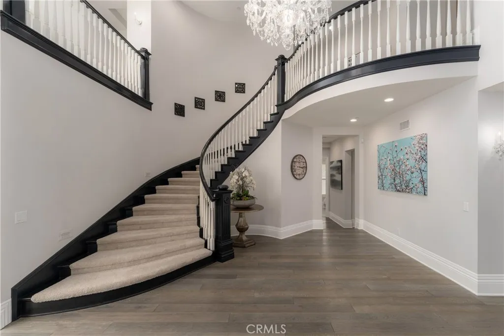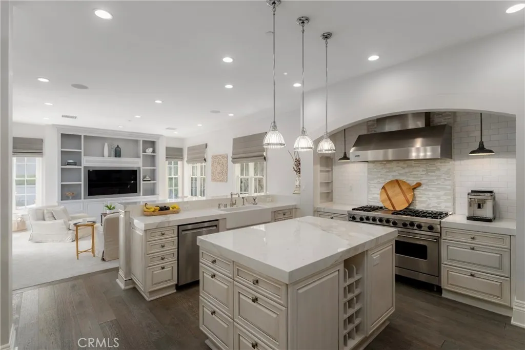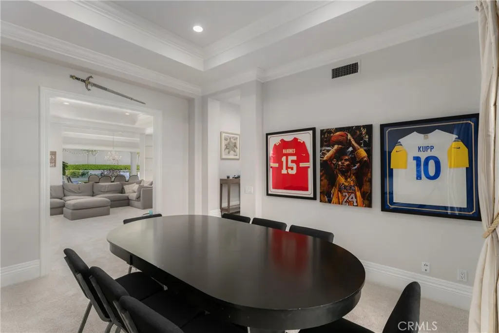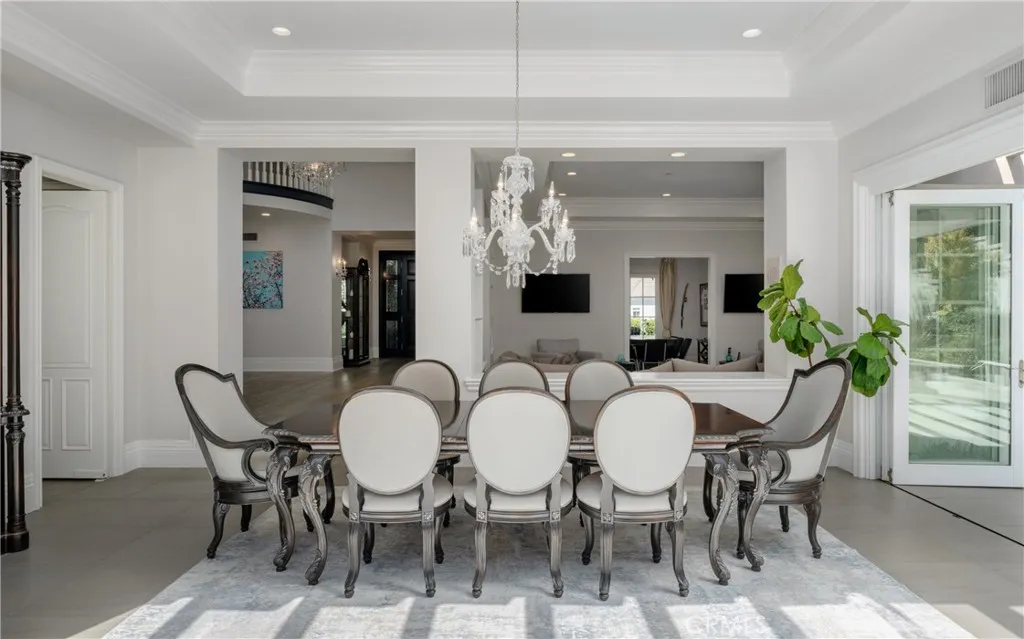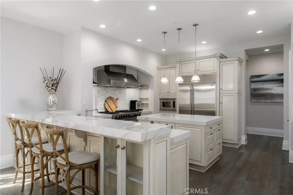 Located in the prestigious, guard-gated community of One Ford Road, this rare Providence Plan 4 offers over 5,100 square feet of refined living space - making it one of the largest homes in the neighborhood. A charming entry welcomes you into a grand foyer with a dramatic winding staircase. The main level boasts a spacious dining room with bifold doors that open seamlessly to the backyard, creating the perfect setting for indoor-outdoor entertaining. The chef's kitchen features porcelain countertops, a large center island, Viking and Sub-Zero appliances, and custom cabinetry with abundant storage. Adjacent, you'll find a formal living room and a versatile bonus room - ideal for a library, office, or even a poker room. A full ensuite bedroom completes the first floor, perfect for guests. Upstairs, the expansive primary suite includes a cozy fireplace, reading nook, and luxurious bathroom with dual sinks, marble finishes, soaking tub, and two custom walk-in closets. A private office or exercise room sits just beyond. Two additional guest rooms can be configured as a private wing. The backyard is designed for year-round enjoyment with a newly replastered pool and spa, generous lounge areas, and a built-in barbecue with counter seating. Residents of One Ford Road enjoy exceptional amenities, including two resort-style pools, a 27-hole putting green, clubhouse and fitness center, sport courts, and year-round community events - all in one of Newport Beach's most desirable locations with top-rated schools and world-class shopping just minutes away.